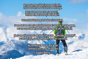 Succesul înseamnă să poți să-ți trăiești zilele simțindu-te fericit în ceea ce te privește, mulțumit de cât de bine te-ai descurcat, chiar mândru de anumite lucruri. Așa că, dă-i drumul, asumă-ți riscuri, fă greșeli, încearcă din nou până când reușești. Și, atunci când eșuezi, acceptă eșecul, căci scopul lui este să te învețe lecții, astfel încât data viitoare să eviți să faci aceleași greșeli.