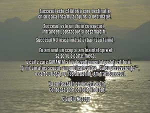 Nu contează dacă reușești sau dacă eșuezi, atâta timp cât perseverezi și nu renunți! Este posibil să existe și piedici, dar trebuie să perseverăm. Dacă reușești să rămâi concentrat și hotărât, atunci vei reuși în cele din urmă să realizezi orice ți-ai propus. S-ar putea să te împiedici și să cazi de mai multe ori, dar ar trebui să te ridici din nou imediat. Și, dacă te gândești că vei eșua, atunci nu ar trebui să încerci de la bun început. Pentru că eșecul este opusul succesului! Singurul motiv pentru care unii oameni eșuează este pentru că le lipsește determinarea, iar asta înseamnă că sunt condamnați să eșueze încă de la început. Așa că, în loc să eșuezi, de ce să nu accepți înfrângerea? De ce să nu arunci pur și simplu prosopul? Ei bine, sper că nu te numeri printre aceste tipuri de oameni! Cei care au succes sunt dispuși să lupte împotriva șanselor copleșitoare! Ei nu fug de problemele lor. În schimb, le înfruntă cu capul sus! Și luptă până la capăt! Așadar, dacă vrei cu adevărat să câștigi, trebuie să te comporți ca un învingător încă de la început. Dacă nu ai ceea ce îți trebuie pentru a reuși, atunci ar fi bine să renunți la întreaga idee.